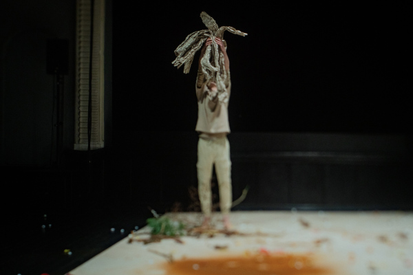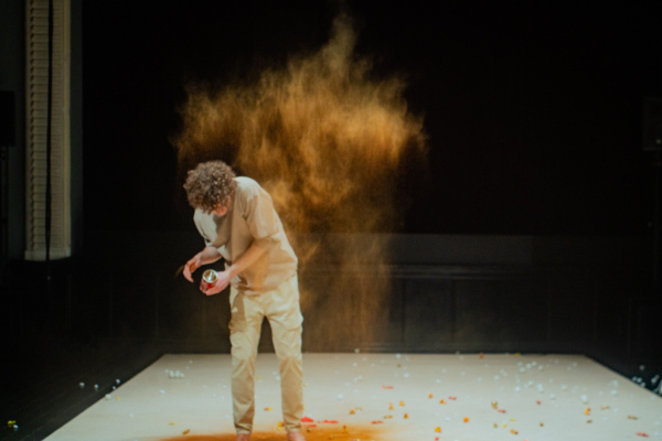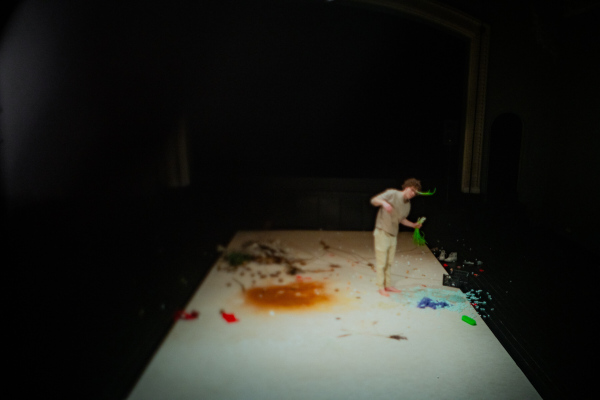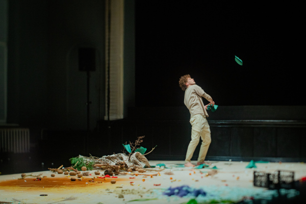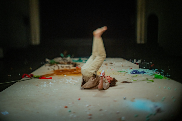 "The performance is a collective dedication to a very personal memory of the day when my father died. That day changed my life, leaving imprints that have had a great gravitational force on my subsequent experiences – they have shaped me and my relationship with the world around me. HOLD ME TIGHT is a solo performance only relatively – besides me, it also involves a lot of objects, whose agency we have placed at the center of the performance. The objects are active participants, inviting the audience to see ourselves as the sum of things, made up of the people, things and landscapes we encounter, the events we experience and the different textures, colours, sounds and moods we live in and carry with us."